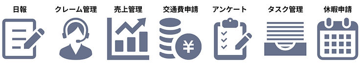 たとえば、「日報」「クレーム管理」「売上管理」「交通費申請」など、これまで紙やExcelでバラバラに管理していた業務を、1つのシステム上で効率よく運用できます。
