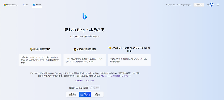 GoogleChromeやfirefoxなどと同じ検索エンジンである「Bing」には、「Bing AI」と呼ばれるAIとのチャット機能が存在します。これは人の代わりにAIが検索して質問に答えてくれます。