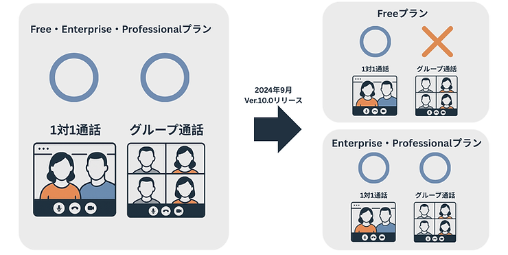 この変更は、通話の内容や利用規模に応じて、より安全で最適な環境を提供するための見直しであり、シンプルかつ安心して使える形へと再設計されたものです。