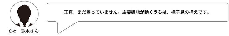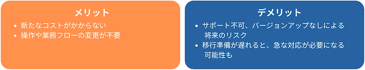 C社では、特に大きなトラブルもなく使い続けているとのことで、「小規模な会社なので、リスクは承知のうえで運用継続」を選択。バックアップは定期的に取っており、いつか移行が必要になったときのために、選択肢だけは探している状況です。