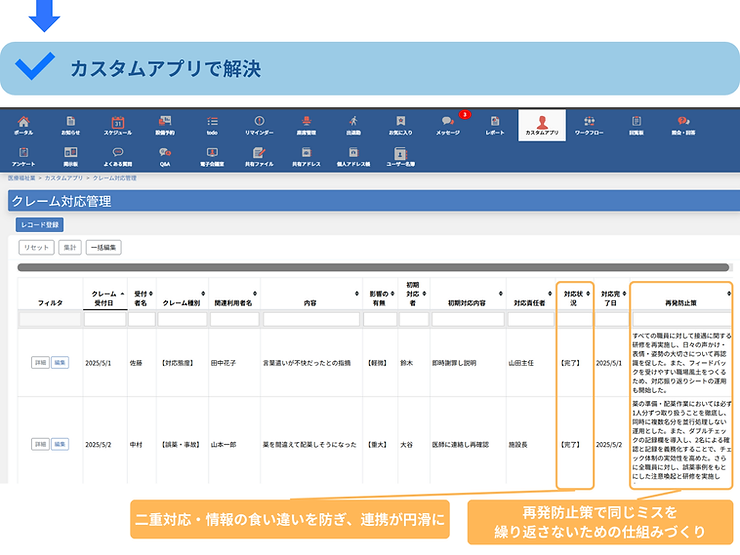 「誰かに伝えたつもりが伝わっていなかった」「シフト変更が共有されず、現場が混乱した」「クレーム対応が属人化し、振り返りができない」