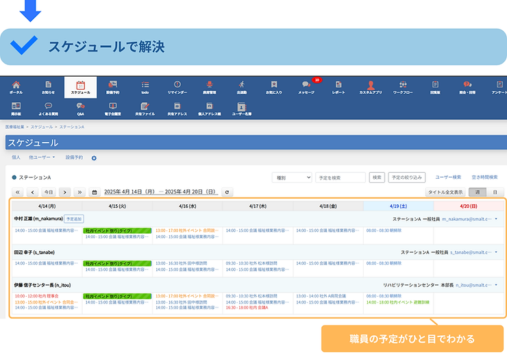 ――そんなあるあるの課題を、SMALT OFFICE(スマルトオフィス)がどう解決できるのか?今回は、医療・福祉の現場で実際に起きがちな3つのケースを取り上げながら、「伝え漏れゼロ」の仕組み化についてご紹介します。