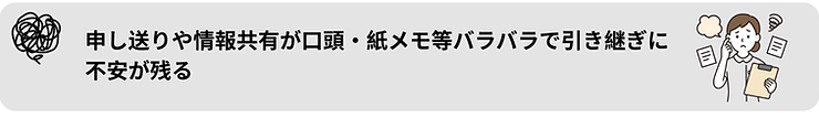 医療・福祉の現場では、日々めまぐるしく変化する状況の中で、正確かつ迅速な情報共有が求められます。しかし、いまだに口頭・紙ベースの申し送りに頼っている施設も少なくありません。