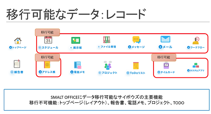 移行可能なデータ種別一覧 + 移行フロー図