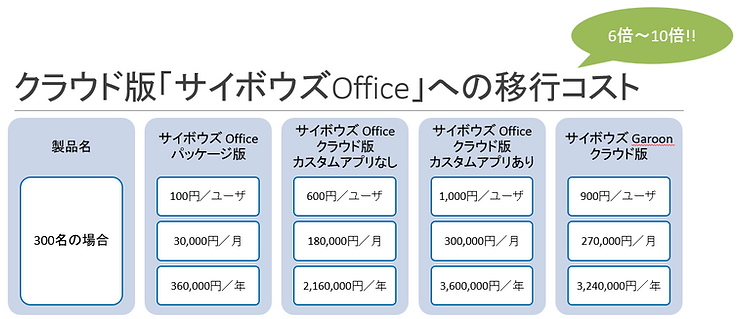 300ユーザーで、パッケージ版からクラウド版に移行すると最大年間360万円超!