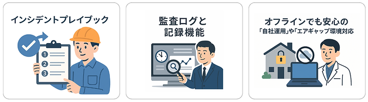 これらに準拠しているということは、個人情報や機密情報を取り扱う現場でも安心して使えるということ。たとえば医療機関であれば、患者さんの健康状態や投薬履歴など、極めて重要な情報を安全に扱うことができます。