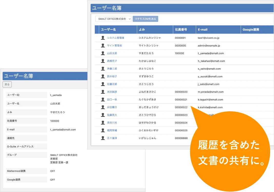 組織の全ユーザの連絡先を確認することができます。他のアプリで、宛先や管理者として割り当てる際の基盤となります。