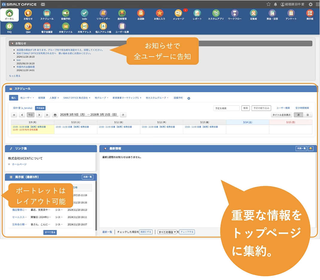 国産グループウェアSMALT OFFICEの機能 - 株式会社ヴィセント